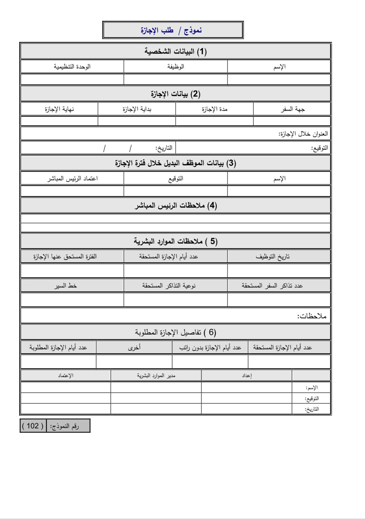أداة تعديل ملفات pdf الشاملة. فاالعامل يصر على أن الإجازة بدون راتب ا يجب أن لا تؤثر على حقوق نهاية الخدمة المنصوص عليها في القانون والتي يجب إحتسابها عن كامل فترة العقد أو فترة الخدمة بدون أي تعرض للإجازات سواء كانت مدفوعة الأجر أو غير مدفوعة الأجر. هذه النماذج جميعها بصيغة بي دي اف pdf وجميعها قابلة للطباعة وتعبئة البيانات بها. فحص تفاصيل حساب البنك لأغراض الحصول على منحة لكل مواطن. نموذج الاحوال المدنية هذا مخصص لاصدار بطاقة احوال شخصية للتابعين مثل الابن والبنت وغيرها. نموذج طلب إجازة زواج.doc (70.0 كيلوبايت, 6863 مشاهدات). نموذج تكليف بمهمة خارج العمل. كيفية كتابة نموذج طلب اجازة مرضية لموظف. نموذج استلام راتب عربي انجليزي. ينبغي أن لا تكون مستلة من رسالة الماجستير أو الدكتوراه. نموذج طلب اجازة عادية استثنائية. عبارة عن طلب أجازة يطلبه الموظف بدون أجر وتكون لموعد محدد نظرا لظروف الزواج ، ويعلم المدير قبلها بفترة ، وغالبا لايتم رفض هذا الطلب كيفية كتابة خطاب اجازة زواج. نموذج طلب إجازة مثل باقي النماذج يجب كتابته بصيغة معينة، قد تختلف الصِيغ لكن المضمون والأساس يبقى نفسه لأن بعض البيانات المهمة يُلزم كتابتها وعدم اغفالها.